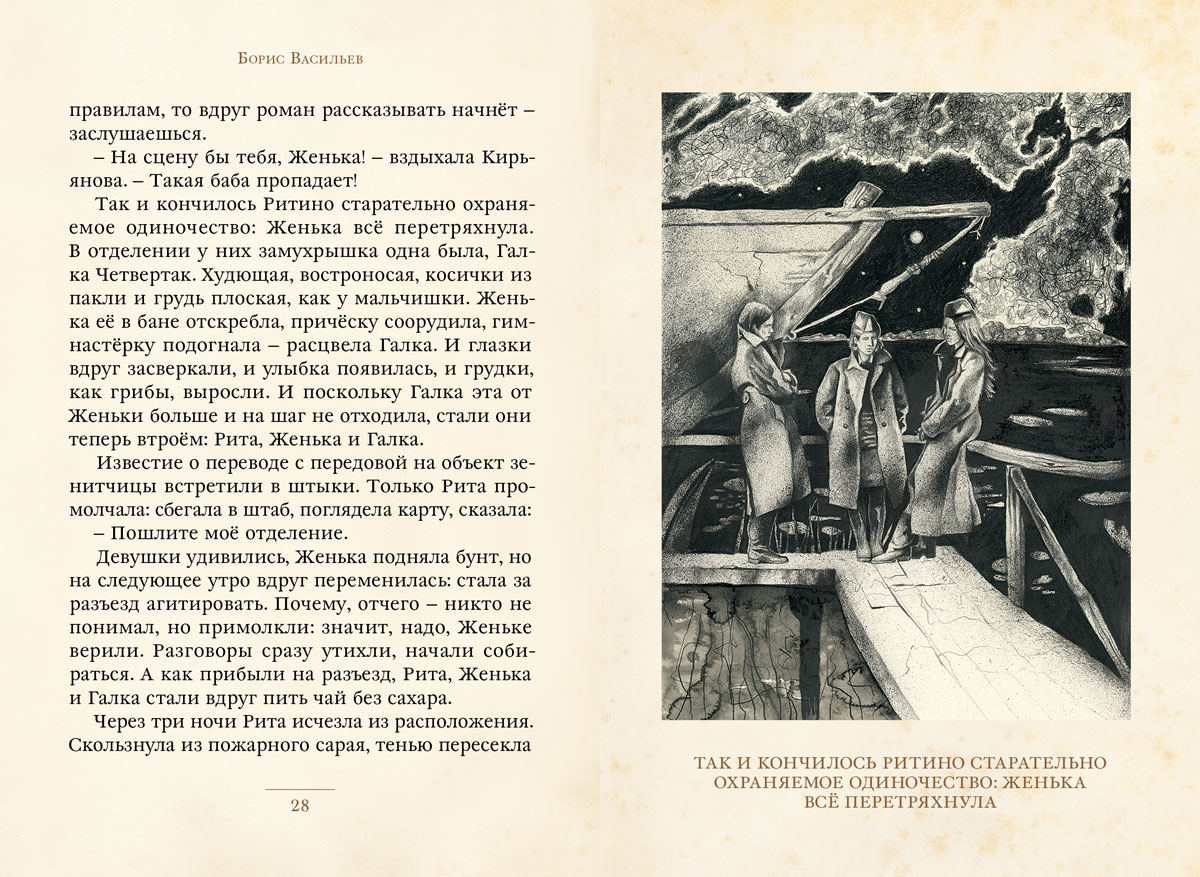 Борис Львович Васильев — непревзойдeнный советский писатель. Он, как никто другой, смог изобразить израненную, но благородную душу советского народа, способного на поразительные поступки и подвиги. Одним из произведений, отозвавшихся щемящей грустью и гордостью в сердцах многих поколений, стала повесть «А зори здесь тихие» о пяти девушках-зенитчицах.