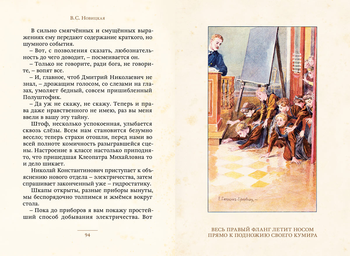 Акварельные иллюстрации Е. П. Самокиш-Судковской передают атмосферу безмятежных гимназических будней.