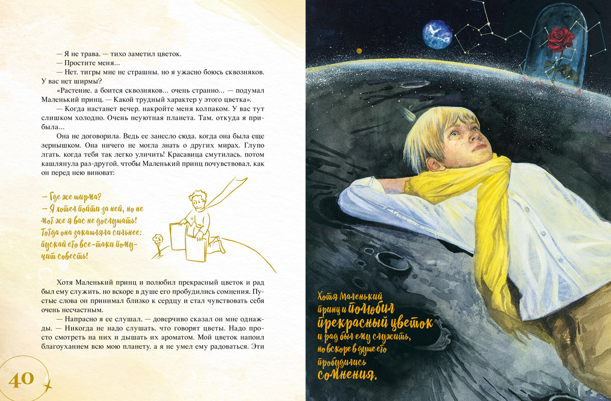 Иллюстрации Анны Зайцевой вкупе с дизайном Юлии Верповской визуально подчёркивают магию воображения и слова Антуана де Сент-Экзюпери."