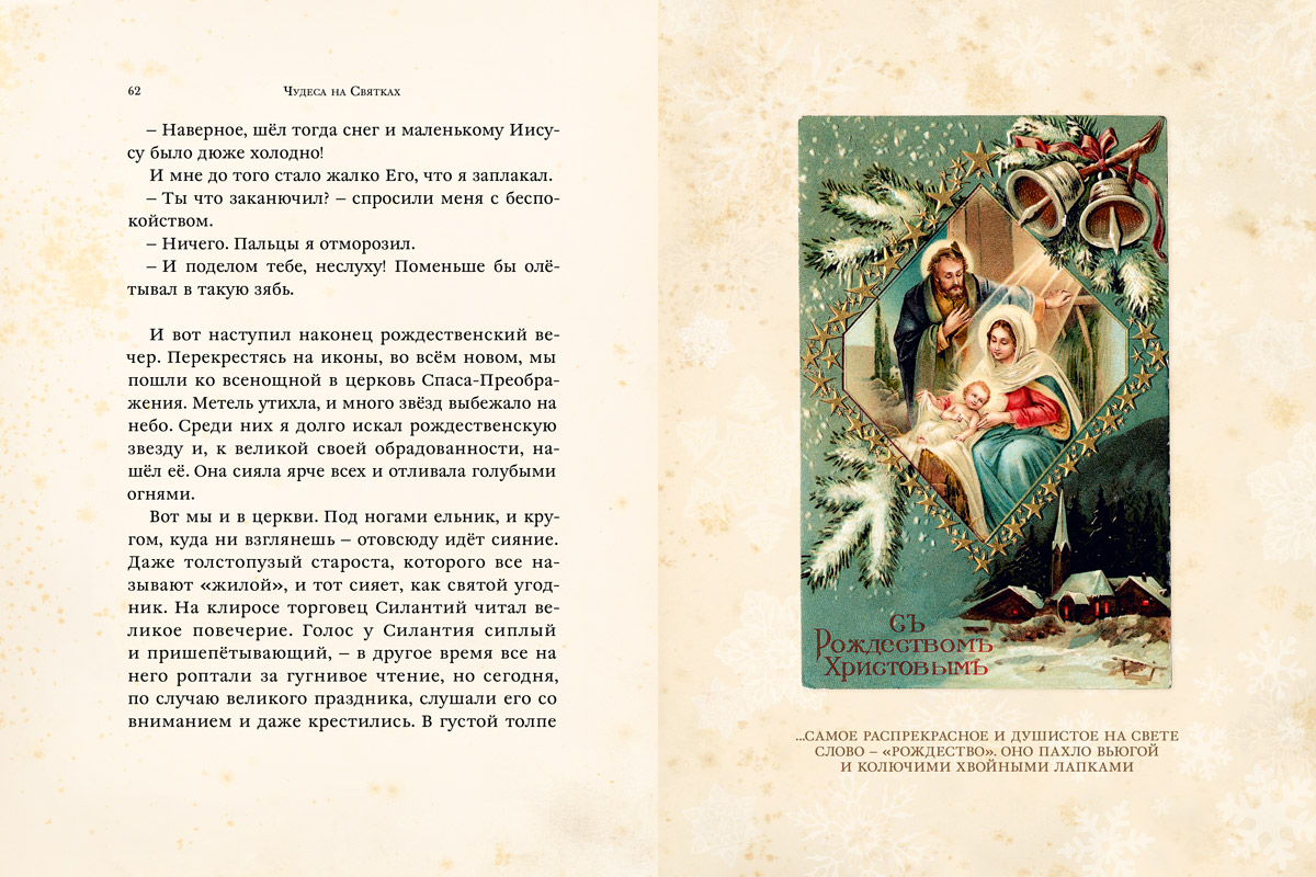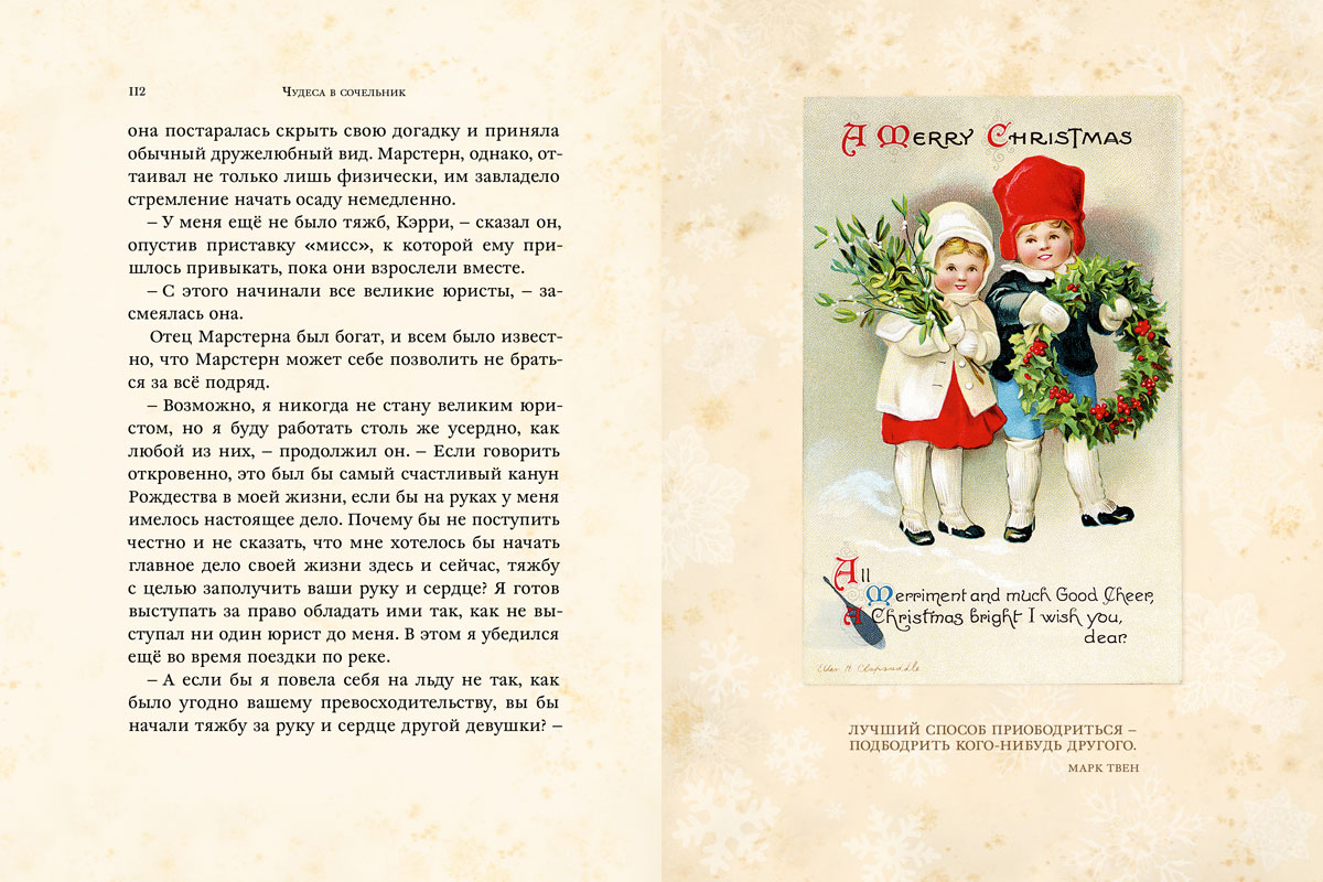 А ещё в праздничные дни дети и родители вечерами уютно устраивались в гостиных и вместе читали рождественские альманахи. Сколько же удивительных сказок и рассказов было написано к Рождеству! И, склонившись над страницами этих книг, можно было посочувствовать бедным детям, рассмеяться, радуясь, что истории о них всегда заканчиваются хорошо, удивиться и даже немного испугаться. Ведь именно на Рождество всегда случаются самые немыслимые, мистические, но абсолютно правдивые истории.