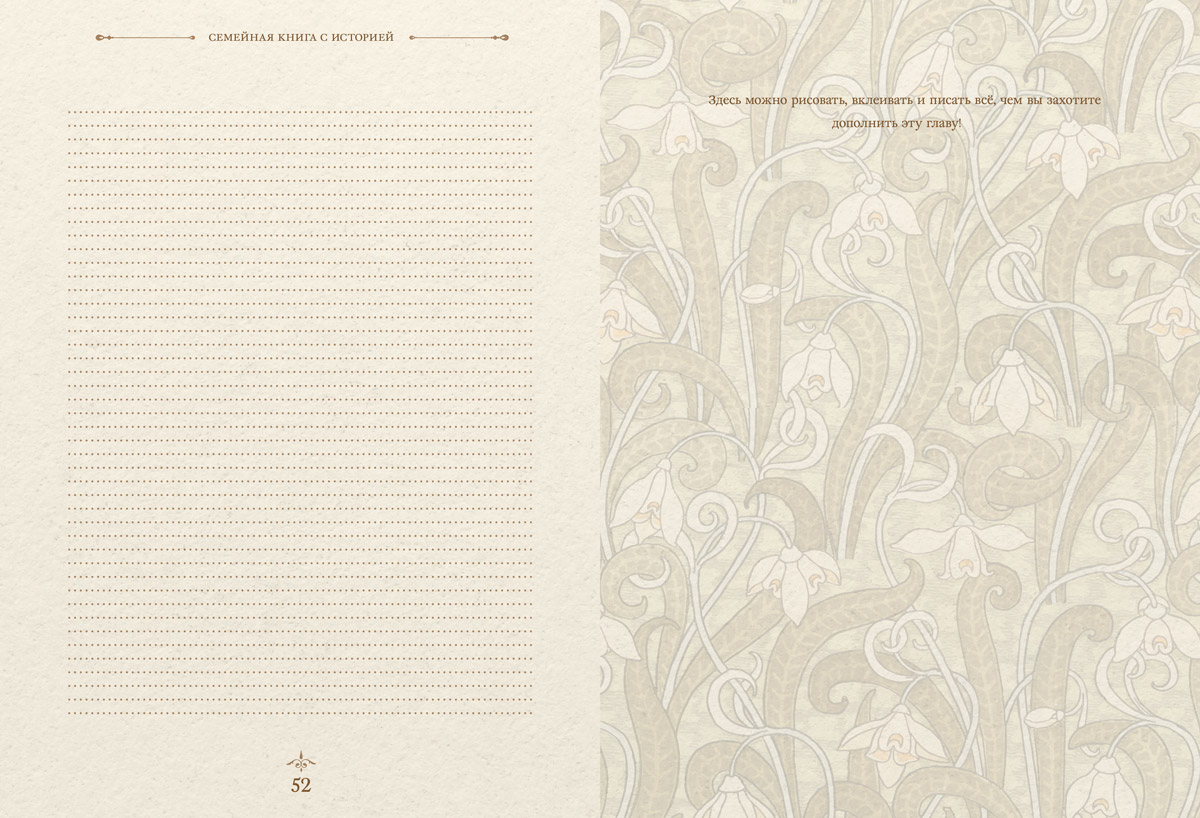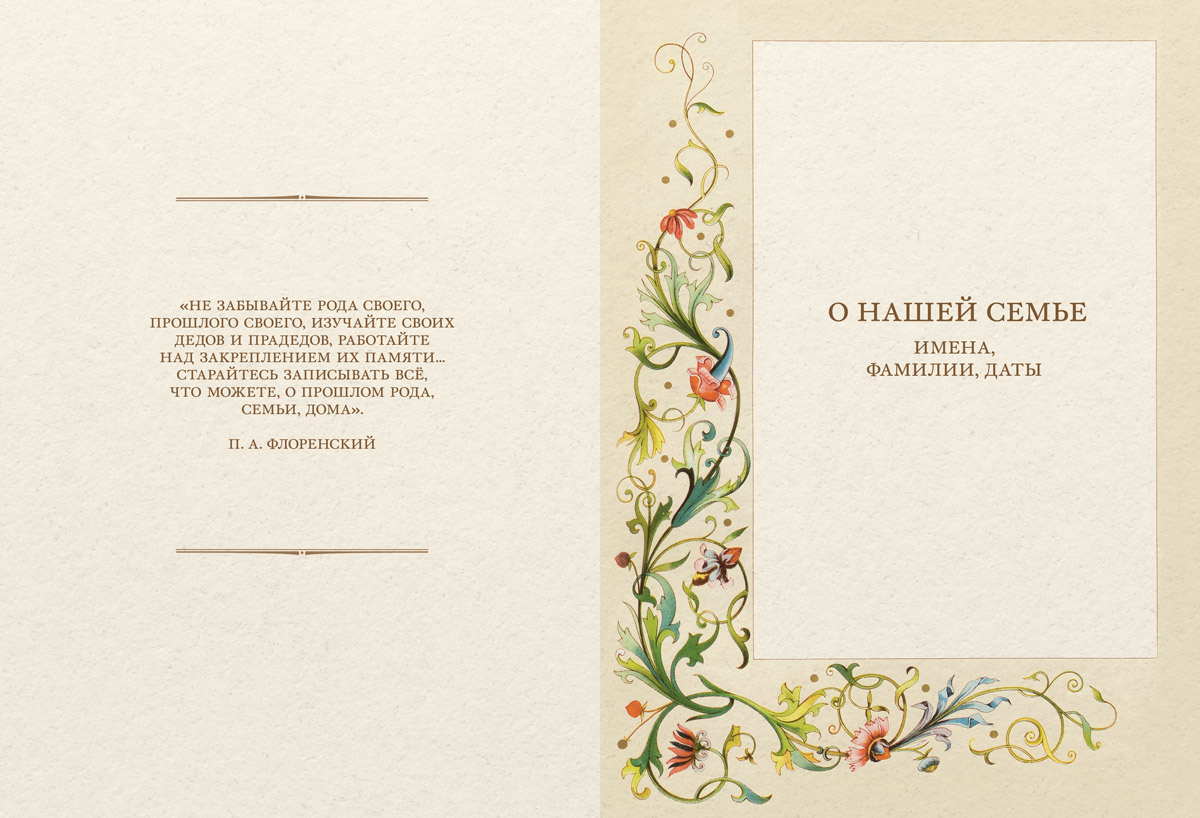 «Семейная книга с историей» — книга, которую предстоит написать вам и вашей семье. Это пространство для обмена воспоминаниями и семейного творчества, диалога поколений друг с другом.
