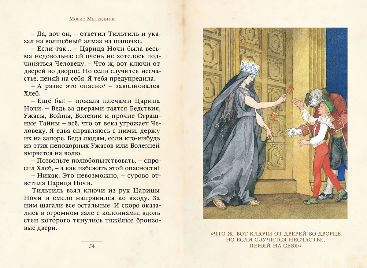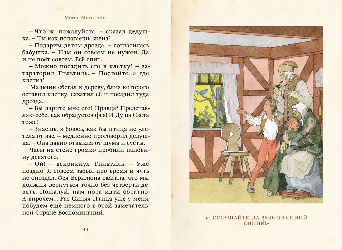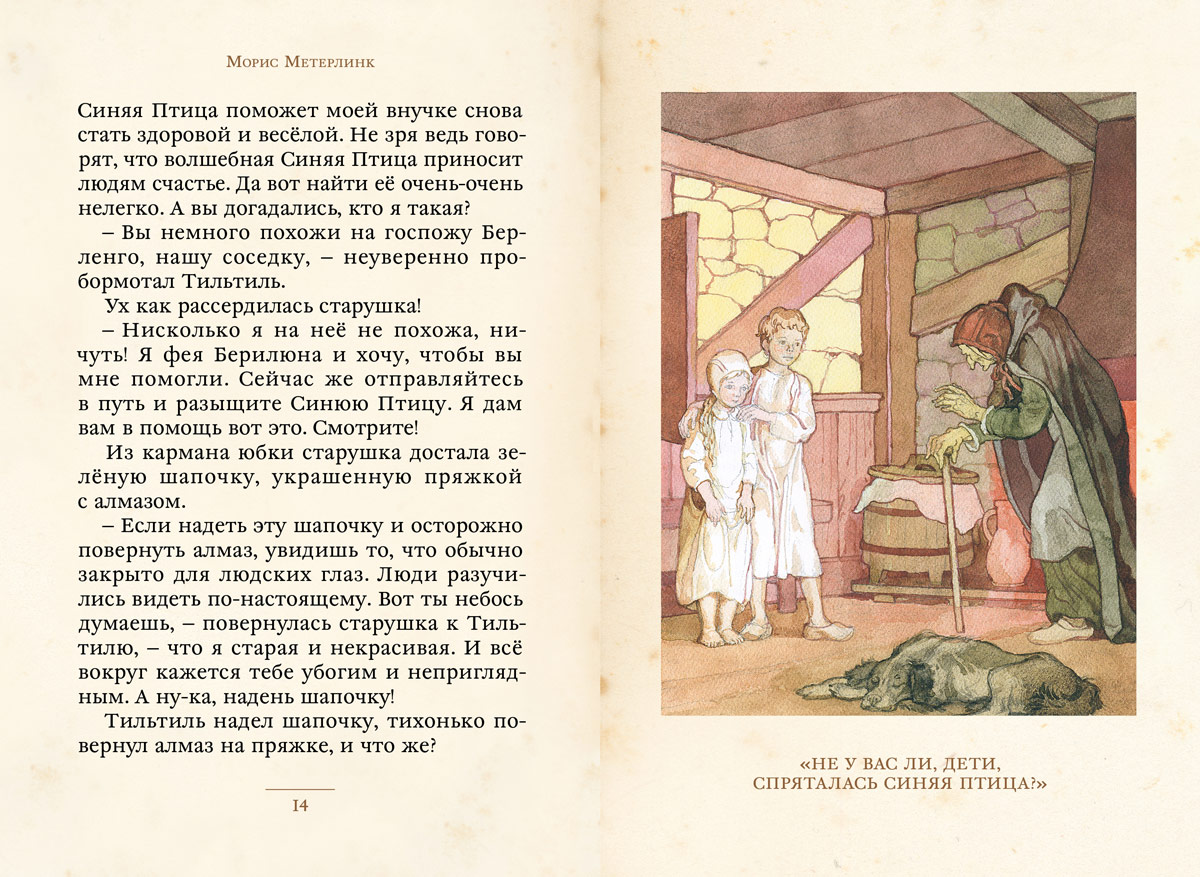 Знаменитый художник Борис Дехтерёв не просто проиллюстрировал эту историю — он так её полюбил, что сам создал пересказ пьесы Мориса Метерлинка, вошедший в эту книгу. А его рисунки к «Синей Птице» уже давно стали классикой детской книжной иллюстрации.
